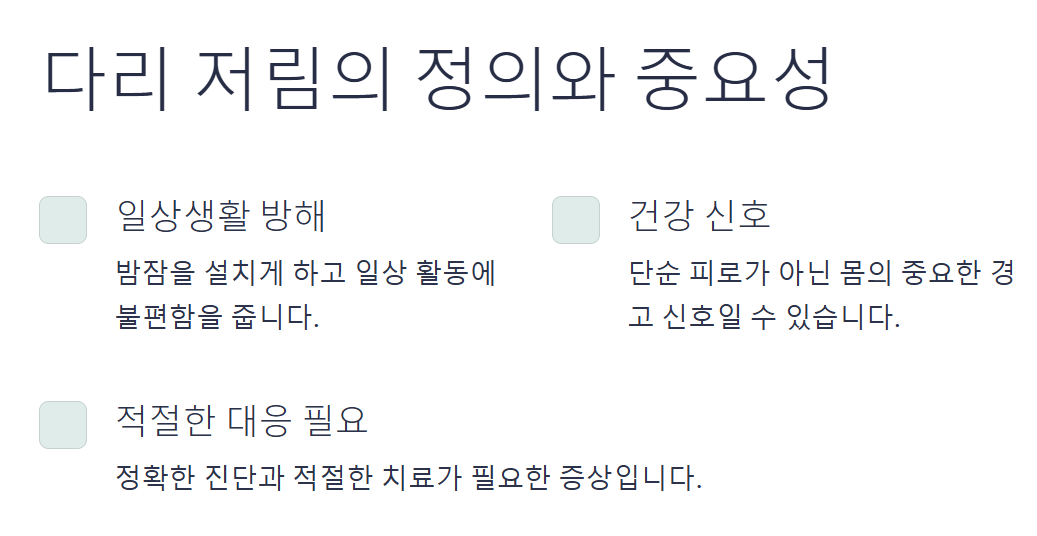 더 이상 혼자 고민하지 마세요. 다리 저림은 단순한 피로감을 넘어, 우리 몸이 보내는 중요한 신호일 수 있습니다.