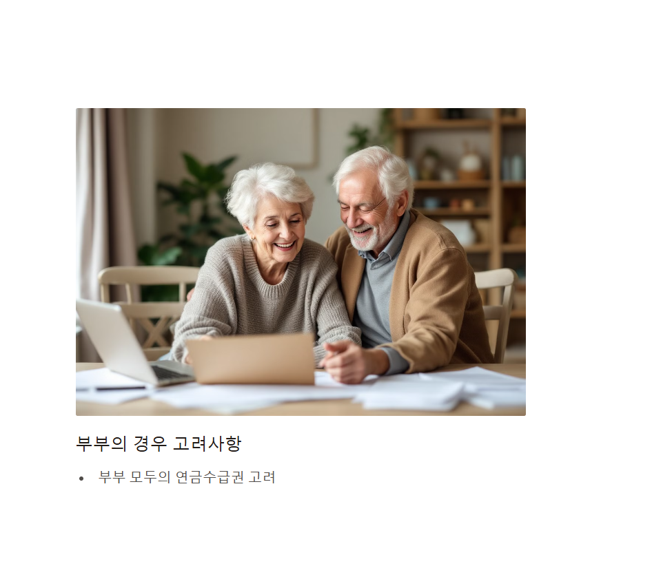 - 부부의 연금수급권을 모두 고려해야 합니다
