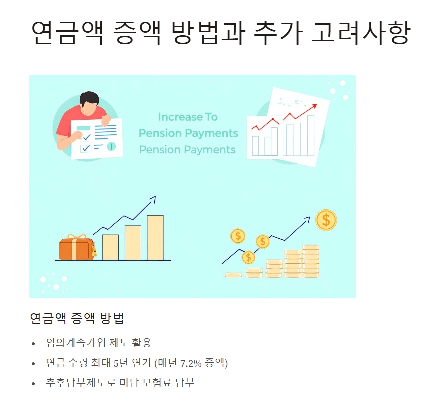 - 지급정지 기간 동안 보험료를 납부하면 향후 연금액이 증가할 수 있습니다