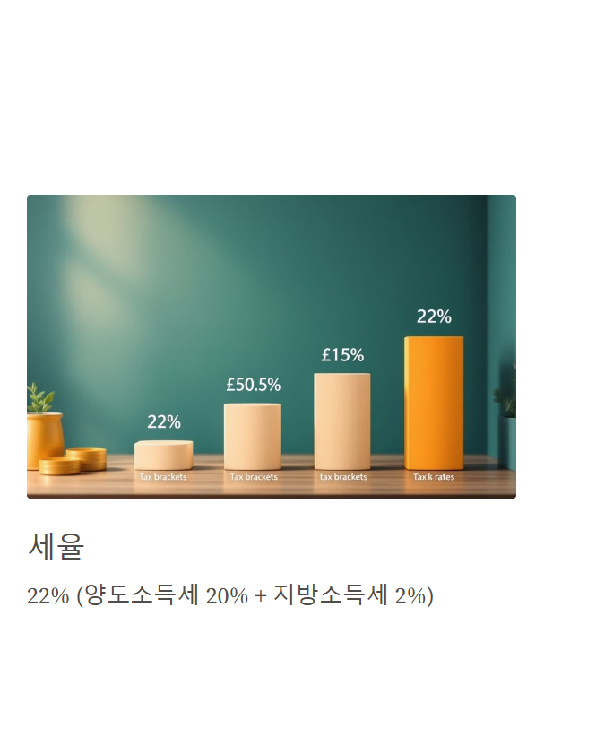 - 세율: 22%(양도소득세 20% + 지방소득세 2%)