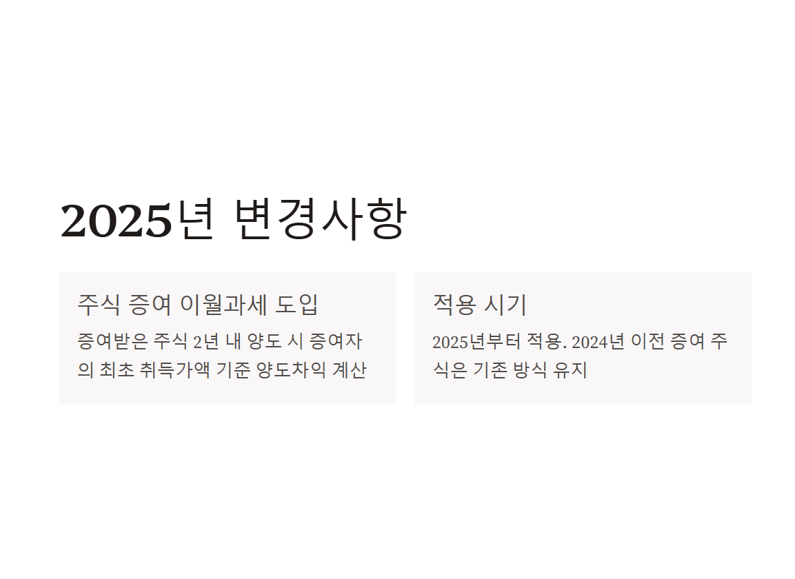 - 2024년 이전 증여받은 주식은 기존 방식 적용