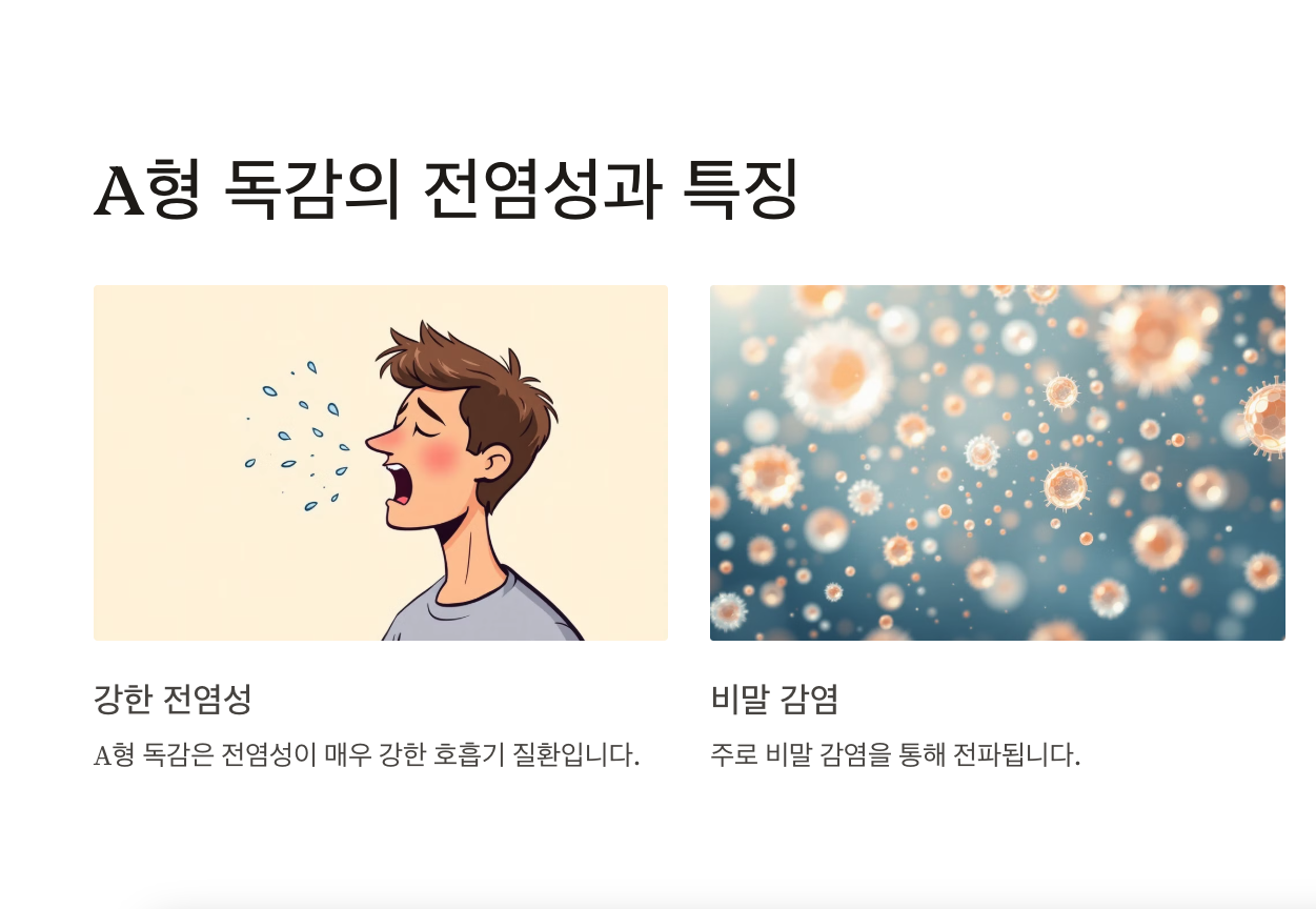 2. A형 독감의 전염성과 특징