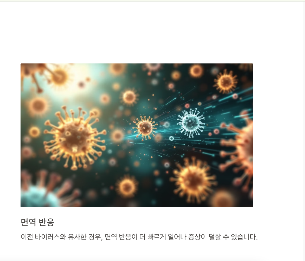 두 번째 감염 시의 증상은 개인의 면역 상태와 바이러스의 변이 정도에 따라 다르게 나타날 수 있습니다. 이전에 걸렸던 바이러스와 유사한 경우에는 면역 반응이 더 빠르게 일어나 증상이 덜할 수 있지만, 이는 보장되지 않습니다.
